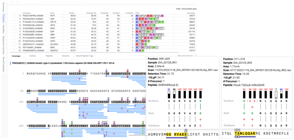 借助 PEAKS Online,突破传统蛋白质组学的研究边界。通过 SPIDER 算法挖掘序列变异体,依托从头测序(de novo sequencing)发现新型肽段。